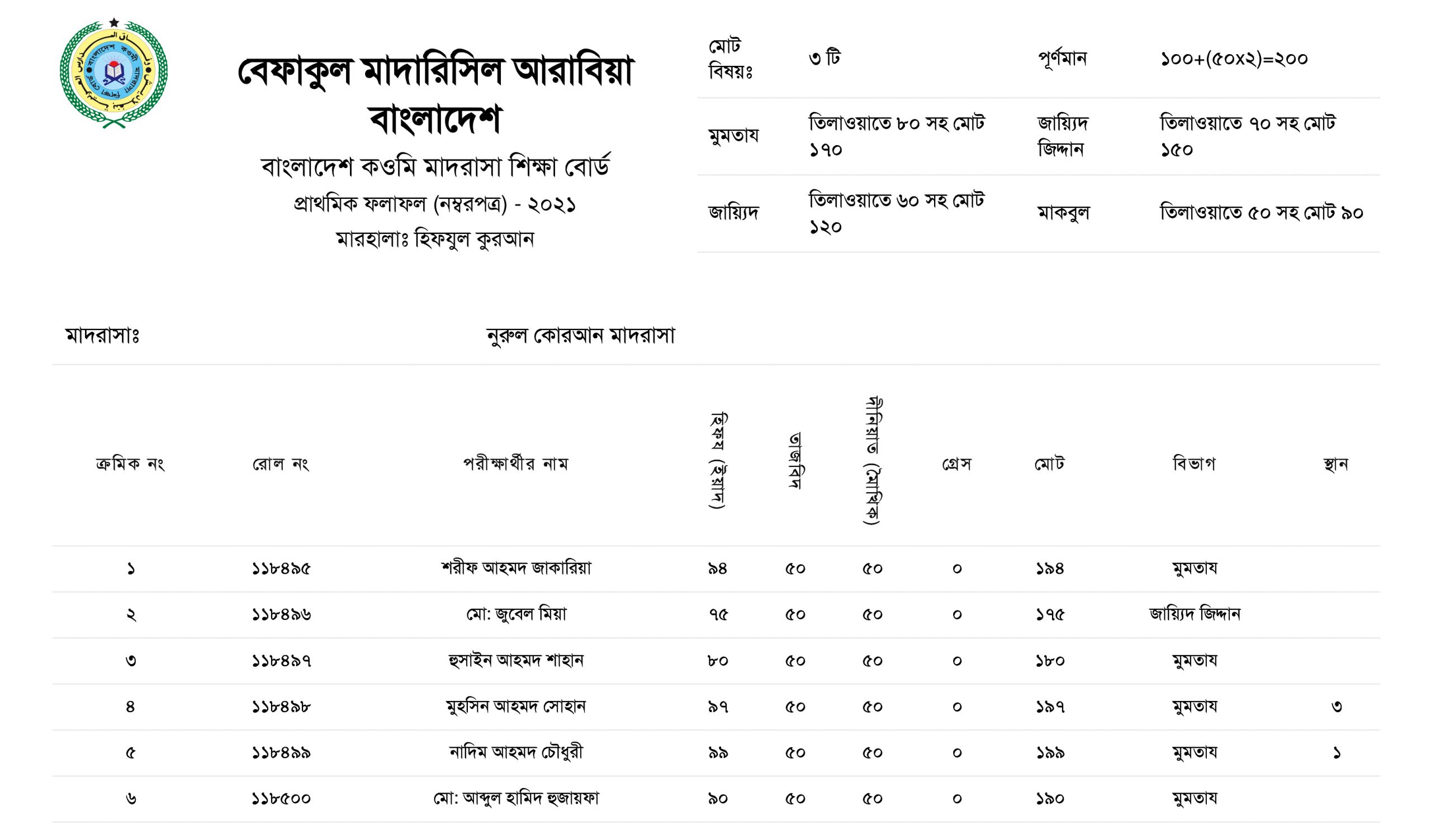 বেফাকুল মাদারিসিল আরাবিয়া বাংলাদেশ-বেফাকের ৪৪তম কেন্দ্রীয় পরীক্ষায় ঈর্ষণীয় সাফল্য অর্জন করেছে নুরুল কুরআন মাদরাসা মৌলভীবাজার।